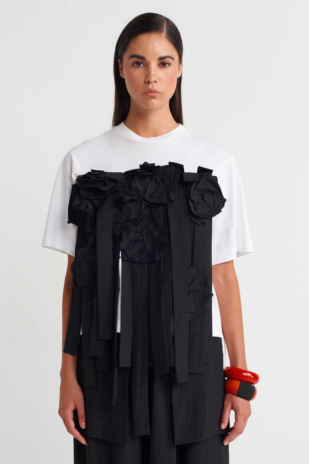 Siyah Örgü Kemer Detaylı T-shirt-Y261011019