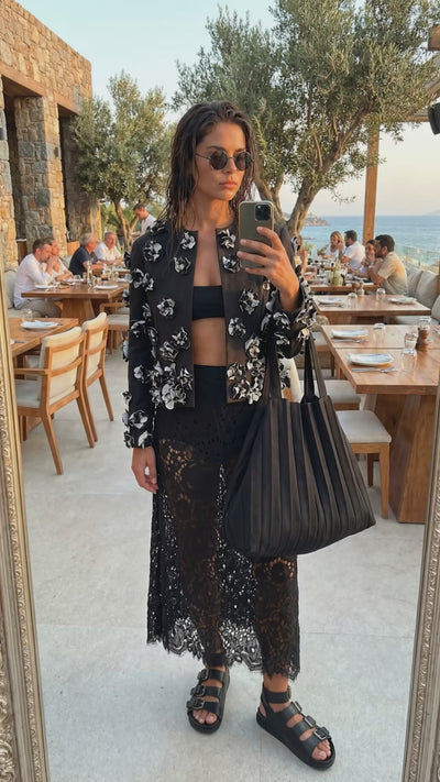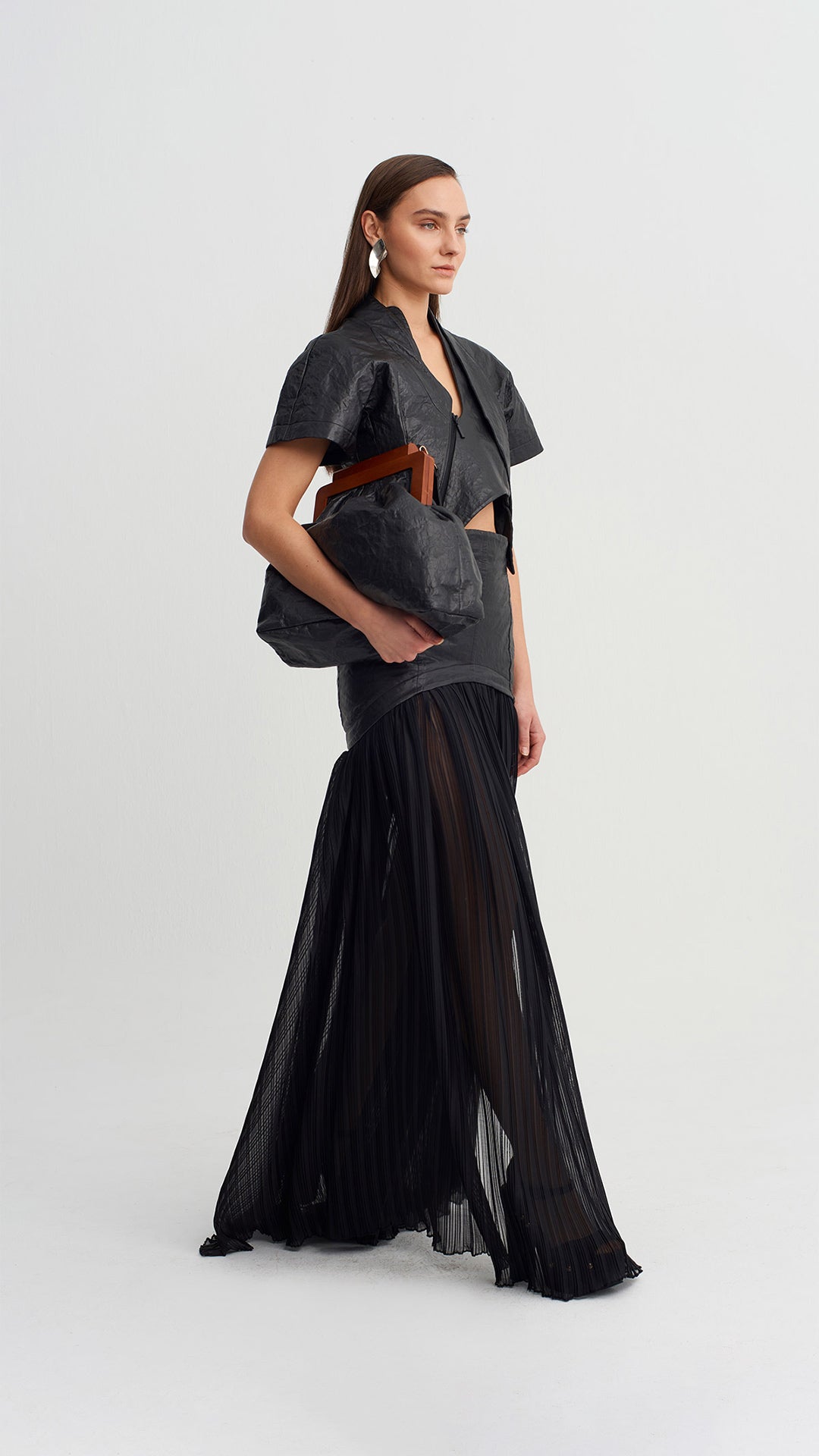 Siyah Dantel Transparan Uzun Etek-Y262012004