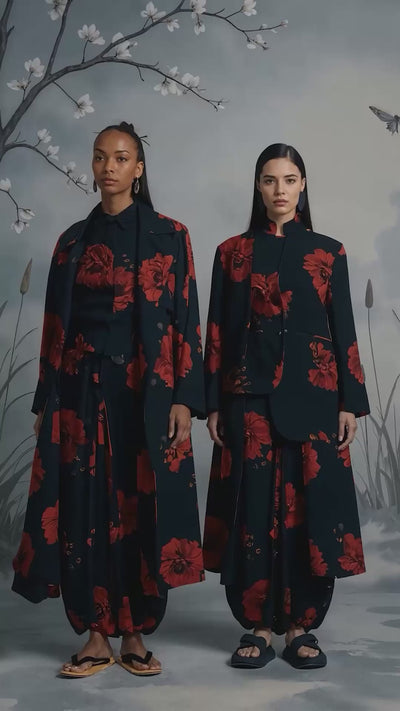 Siyah Asimetrik Bağlamalı Şalvar-Y263013007
