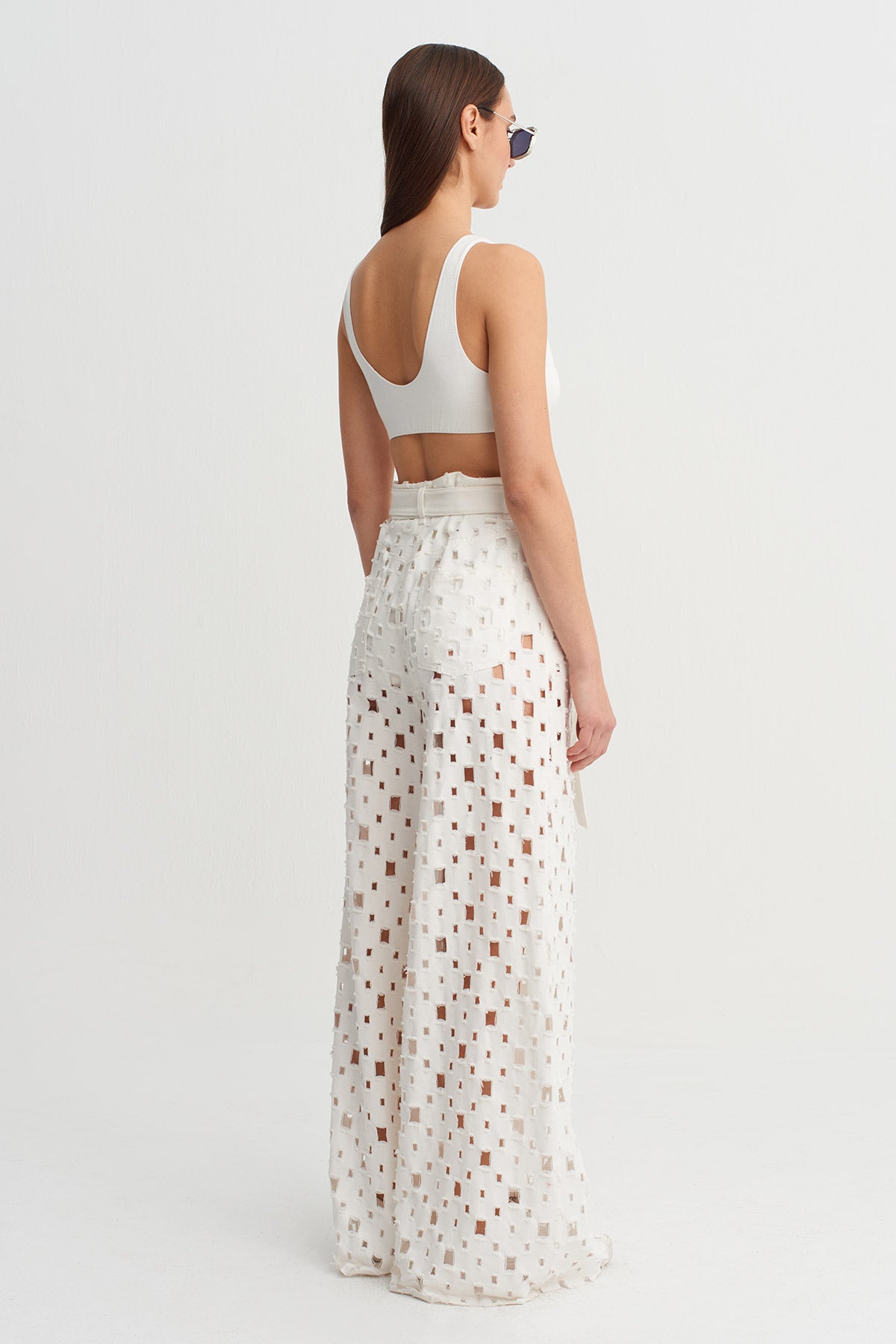 Off-White Textured Wide Leg Trousers - Y263013048