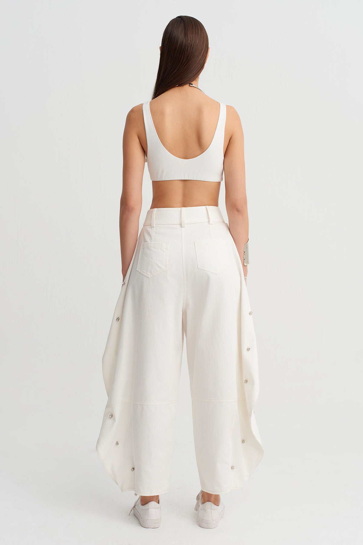 Off-White High-Waisted Trousers with Diamond Details - Y263013028