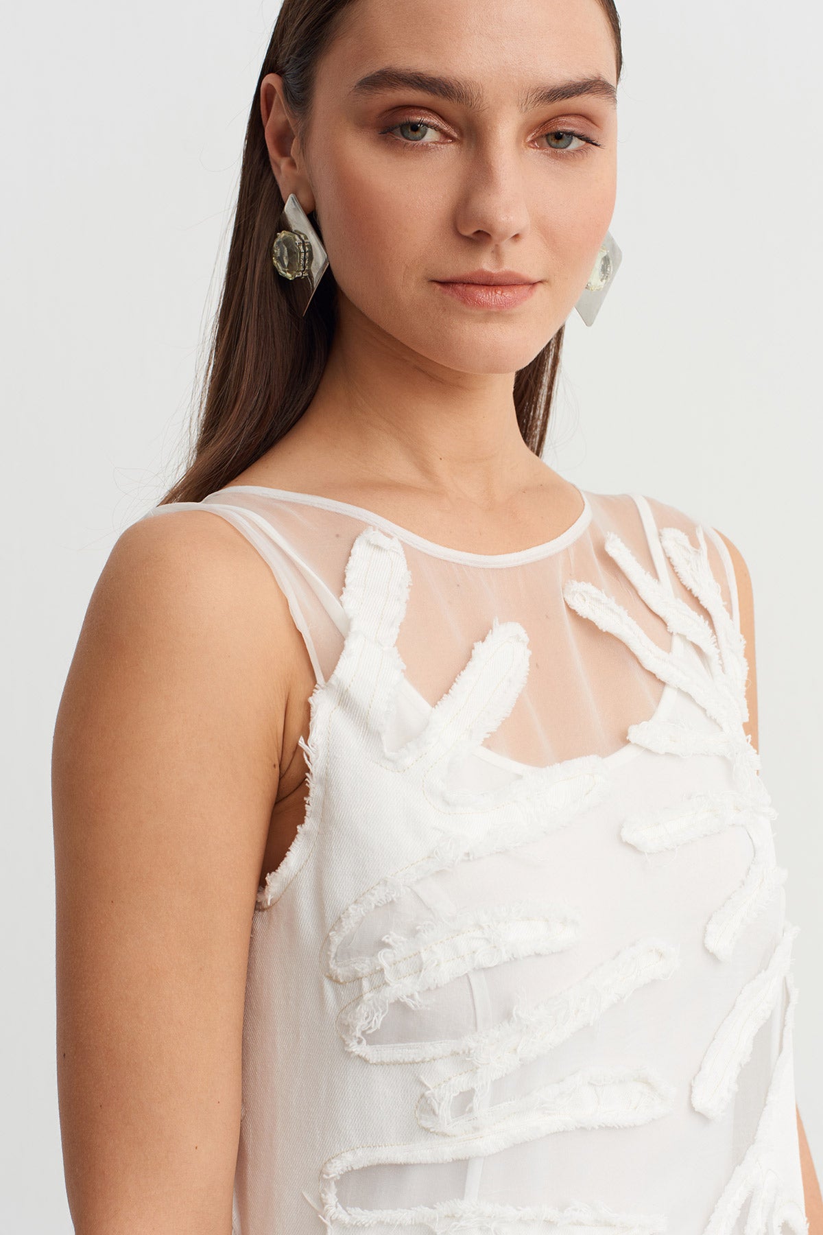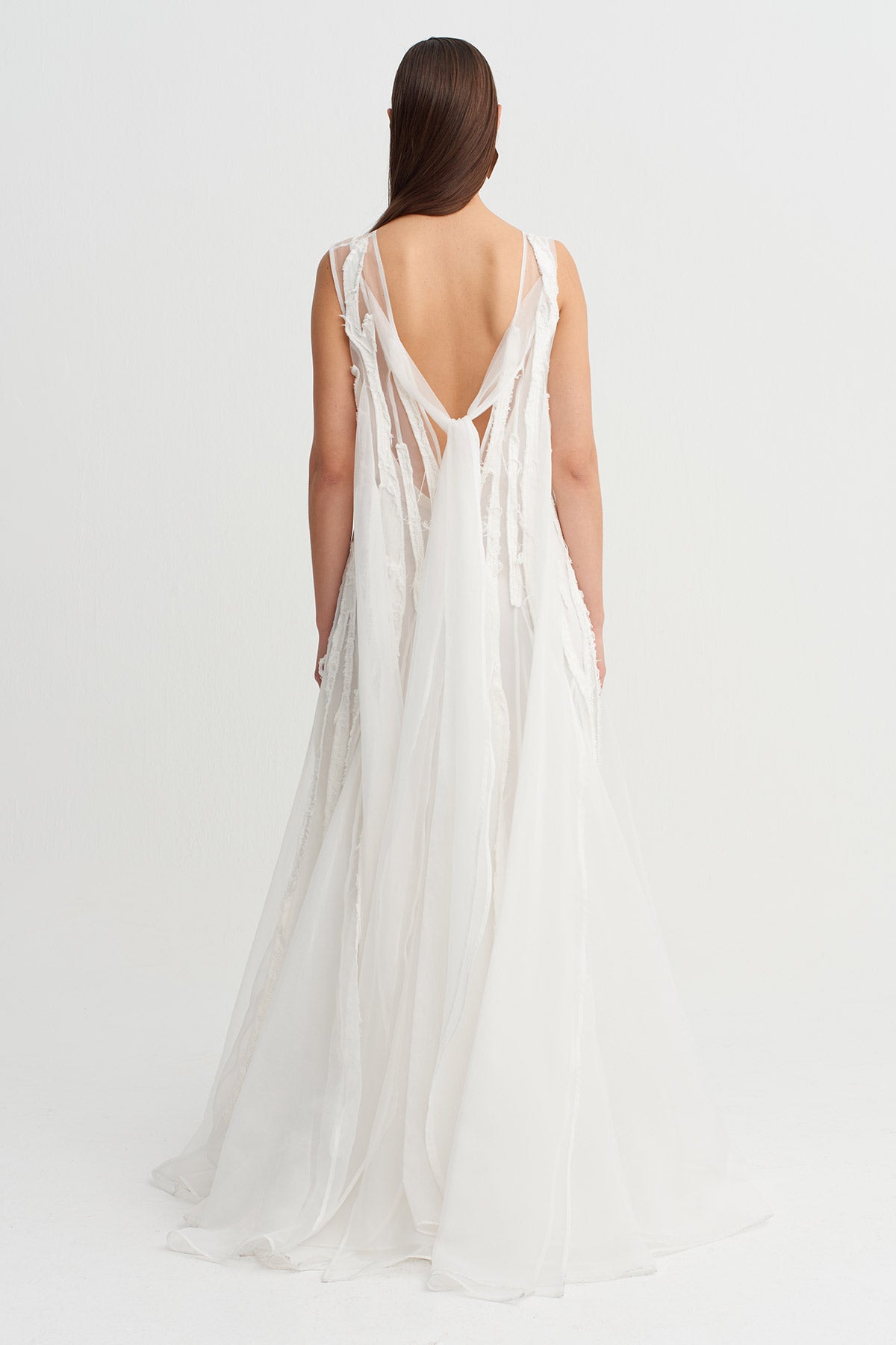 Off-White Striped Fabric Applique Tulle Dress - Y264014035